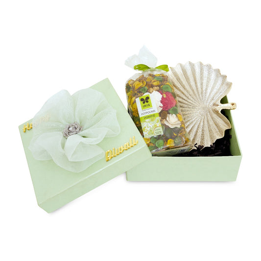 Gift Dial Basket Hamper - Candles holder and jar of almond chocolates