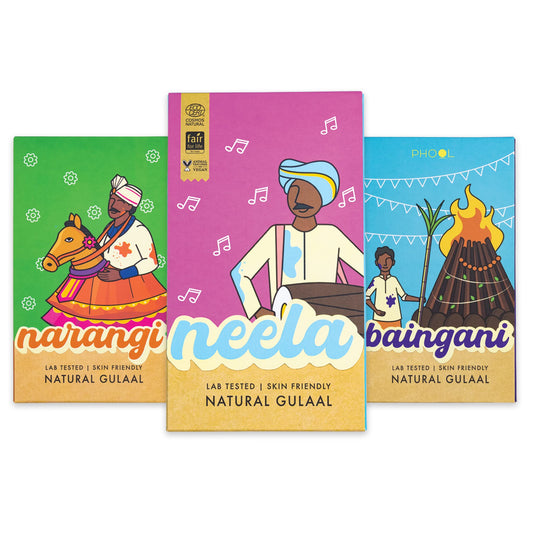 PHOOL COMBO of 4 Natural Gulaal (pink, yellow, blue, green)