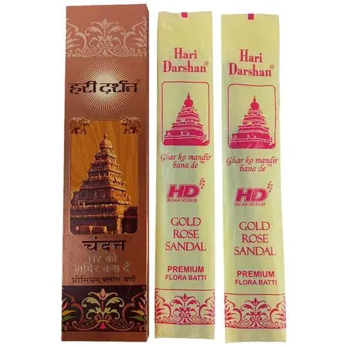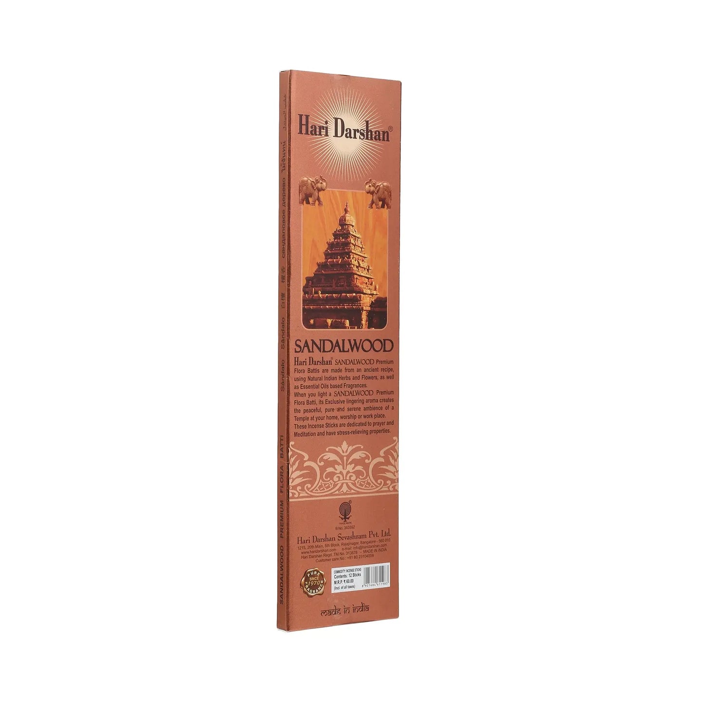 Hari Darshan TEMPLE SANDAL Premium Flora Batti Incense Sticks (12 sticks)