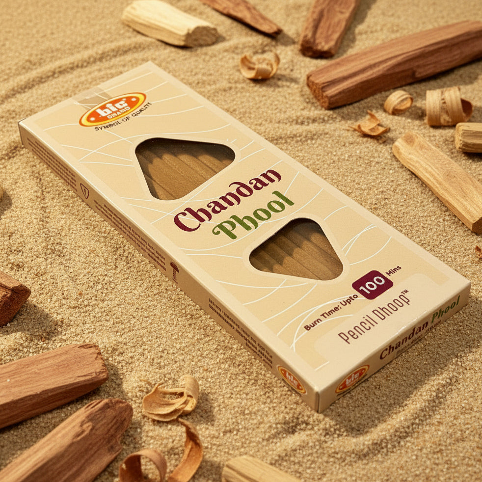 BIC CHANDAN PHOOL Pencil Dhoop Sticks deliver authentic sandalwood fragrance in a convenient 12-stick format. Crafted with premium chandan essence, these incense sticks create a calming aromatic atmosphere ideal for meditation, prayer, or daily relaxation. The slow-burning formula ensures extended fragrance release, making each stick last longer. Perfect for home puja rooms, offices, or personal wellness spaces, these dhoop sticks combine traditional Indian incense-making with reliable quality. Experience the timeless appeal of sandalwood's soothing properties with every use.