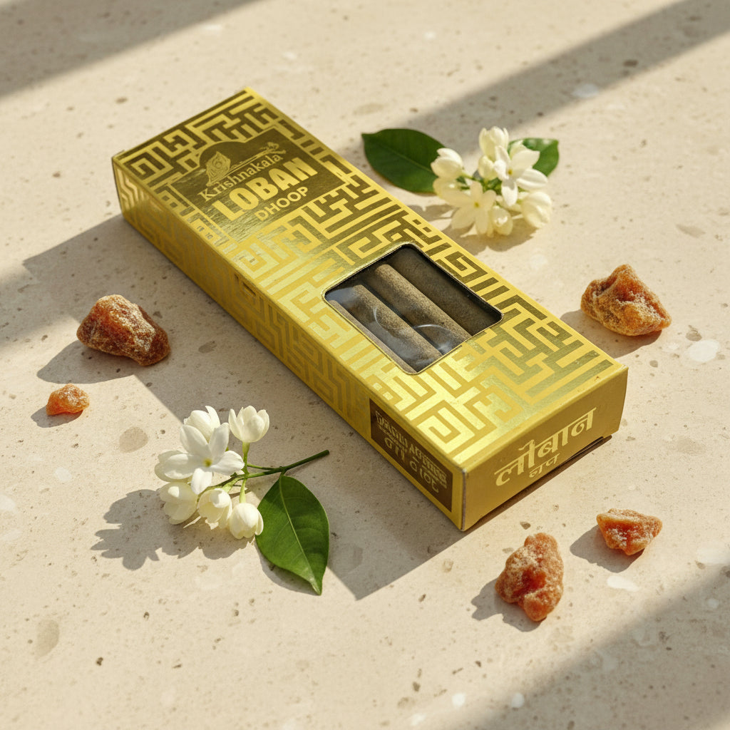 Krishnakala LOBAN Premium Dhoop elevates your spiritual practice with authentic loban incense crafted for discerning users. Each pack contains 10 premium sticks formulated with pure loban resin, known for its rich, aromatic properties in traditional rituals and meditation. The carefully balanced composition ensures consistent fragrance release and extended burn time. Ideal for daily puja, yoga sessions, or creating a serene atmosphere in your space. Experience the refined quality that distinguishes premium dhoop from standard alternatives.