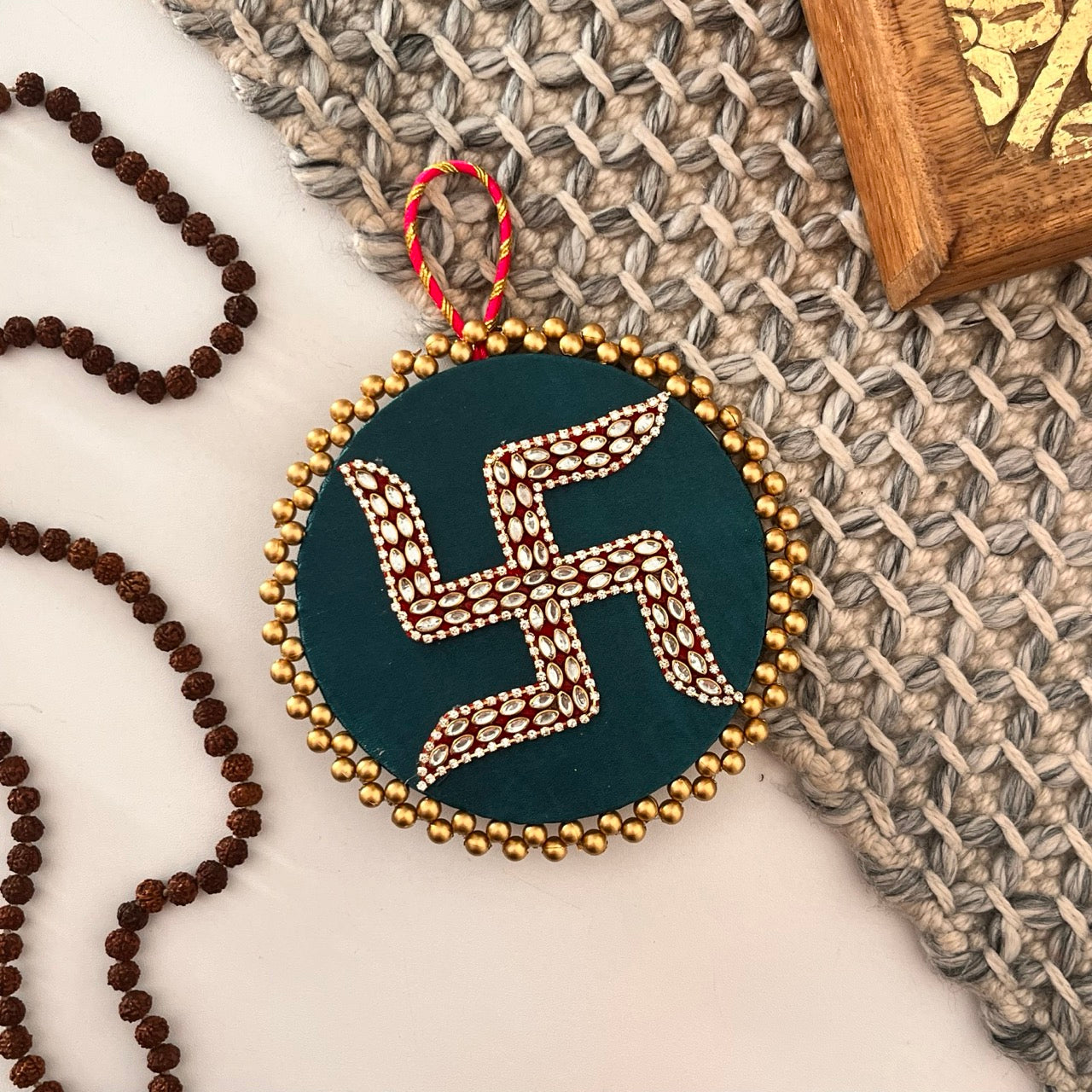The Swastik Door Hanging in green symbolizes growth, renewal, and prosperity, bringing auspicious energy to your home or workspace. Expertly crafted, this door hanging combines the traditional swastik symbol with a refreshing green hue, enhancing its spiritual significance while adding a vibrant, natural touch to your entrance. Easy to install and durable, it offers a meaningful way to invite positivity and protection into your environment.