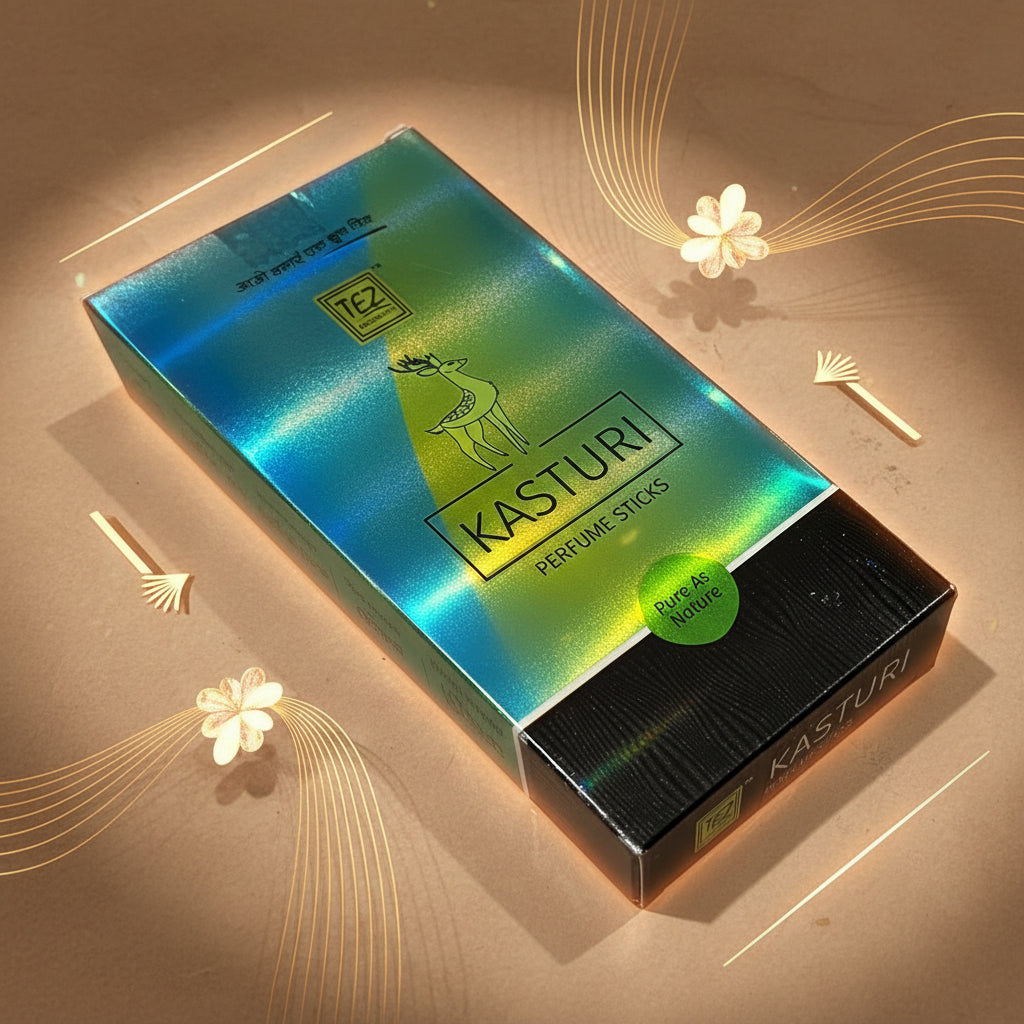 Tez Agarbatt KASTURI Perfume Sticks deliver an authentic aromatic experience rooted in traditional incense craftsmanship. Each 100 gm pack contains premium-quality agarbatti infused with the rich, warm essence of kasturi—a classic fragrance choice revered across Indian households. The carefully selected ingredients ensure consistent fragrance release, creating an inviting atmosphere in any space. Perfect for daily rituals, meditation, or simply elevating your home ambiance, these perfume sticks combine heritage with reliability. The generous 100 gm quantity provides extended use, making it an economical choice for regular users who appreciate authentic, long-lasting aromatic solutions.